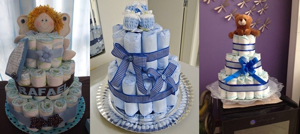 Alguns dias atrás eu publiquei um post com vários bolos de fralda cor-de-rosa, para as futuras mamães que estão organizando seu chá de bebê. E prometi um outro post com bolos de fralda azuis, não é verdade? Como aqui no blog, promessa é dívida, passei hoje para deixar ideias para você que, como eu, adora o azul! E, seguindo a linha do que comentei recentemente com vocês (que já está mais do que na hora de acabar com a velha história de que existe cor de menino e de menina), essas inspirações valem para mães de pequeninas e pequeninos!