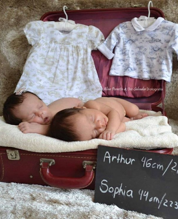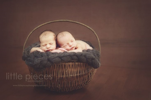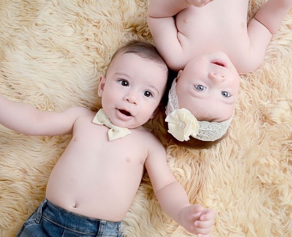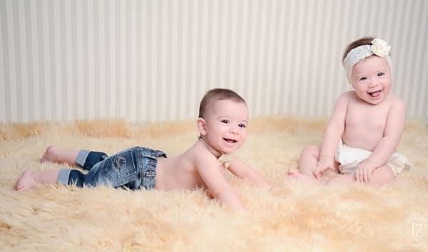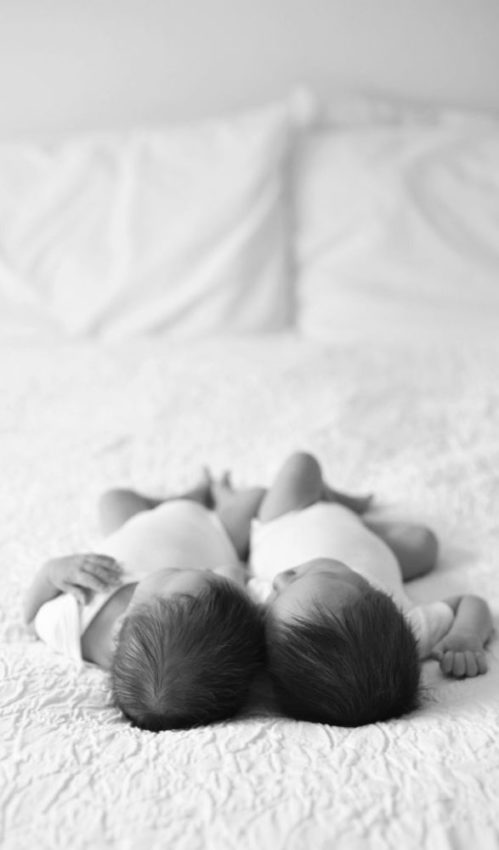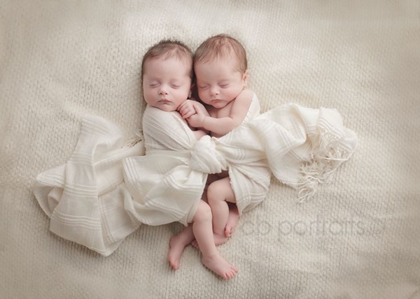 As fotos que selecionei para mostrar a vocês são de irmãos gêmeos. Mas quem disse que você não pode fotografar seus dois pequenos da mesma forma, se eles tiverem idades diferentes? Claro que existe uma graça especial quando os dois irmãos têm exatamente o mesmo tamanho – mas uma foto com o irmão mais velho e o caçula é tão inspiradora quanto!