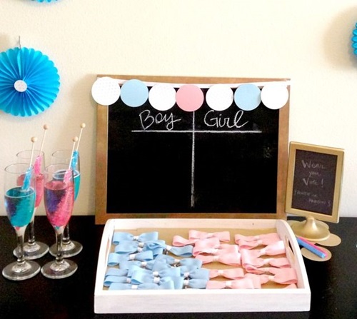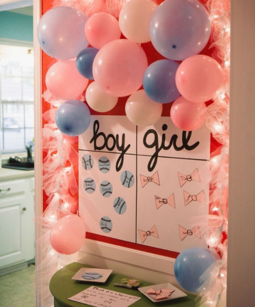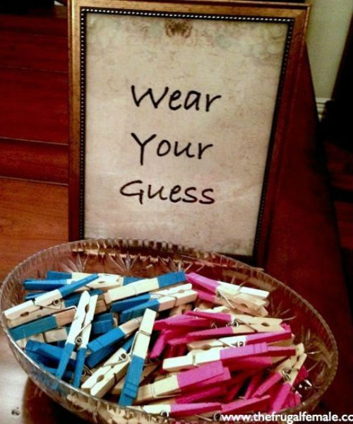 Brincadeiras: você pode pedir que cada convidado dê seu palpite – se é um menino ou uma menina. Deixe bloquinhos para que eles escrevam sugestões de nomes, faça uma votação ou simplesmente deixe pregadores coloridos à disposição, para que eles pendurem na roupa sua aposta!