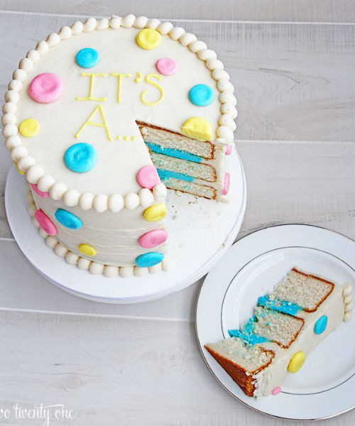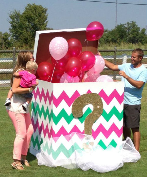 A hora de revelar o sexo do bebê: você pode contar a novidade com o recheio do bolo – ao cortá-lo, os convidados descobrirão (pela cor) se é um menino ou uma menina! A ideia da caixa com bexigas também é muito divertida: use balões com gás hélio rosa ou azul, que sairão voando para surpreender a todos!
