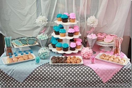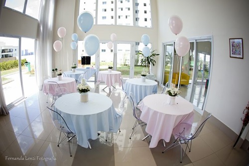 Decoração: o rosa e o azul ainda são as cores mais usadas para identificar meninas e meninos. Então brinque com as cores, espalhando-as nos balões, toalhas, tags e bandeirinhas!