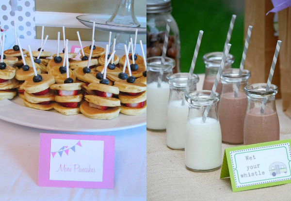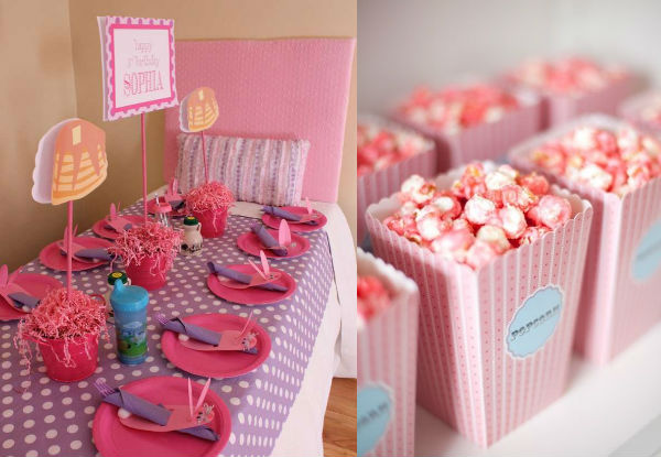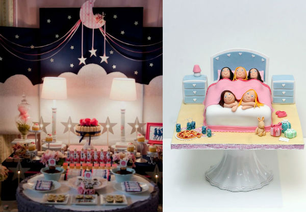 Guloseimas não podem faltar nessa noite de festa! Repare nos bolos divertidos feitos com pasta americana, nas bolachas que imitam máscaras de dormir e nos cupcakes decorados com pijamas. É importante lembrar que você deve oferecer um café da manhã para as crianças no dia seguinte. Frutas, panquecas e potinhos com cereais podem ser boas apostas (depois da farra da noite, nada como uma comidinha saudável pela manhã!).