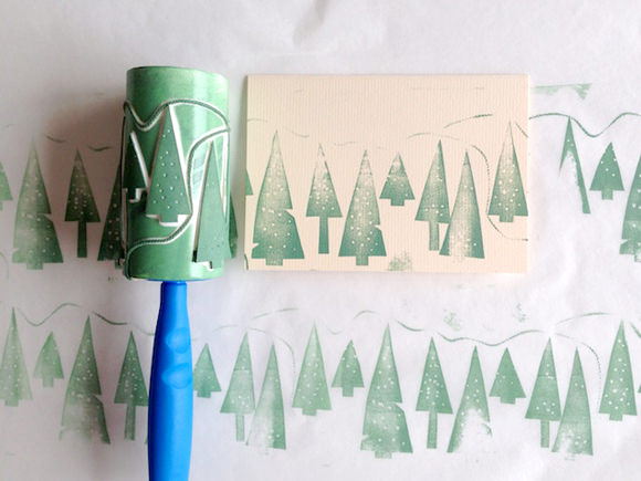 Sabe aquele rolinho adesivo que você compra no supermercado para tirar bolinhas e pelinhos de roupas? Pois ele pode ser usado como um rolo de pintura super bacana! Dá para as crianças ajudarem a confeccionar cartões de Natal lindos para entregar junto com os presentes! Ou dê asas à imaginação e use-o para decorar os embrulhos! Para saber como fazer o rolo (que usa pedaços de espuma recortados para dar forma aos desenhos), acesse o site da Handmade Charlotte.
