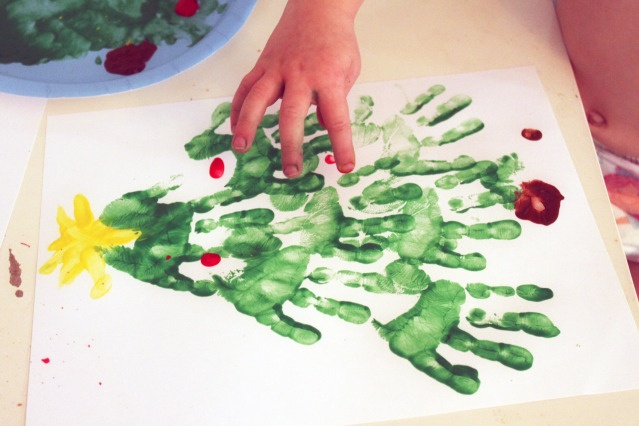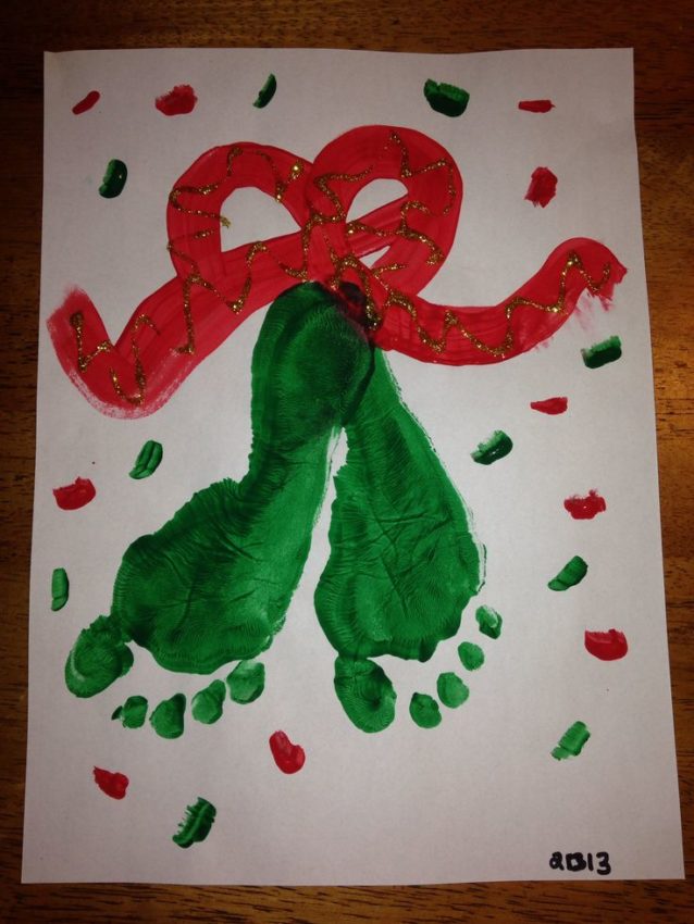 Claro que não poderia faltar uma sugestão com tinta (que eu adoro, adoro, adoro!). Que tal fazer sinos com a impressão dos pés? Ou árvores de Natal com as mãos? Esses e outros modelos você pode ver no Pinterest.
