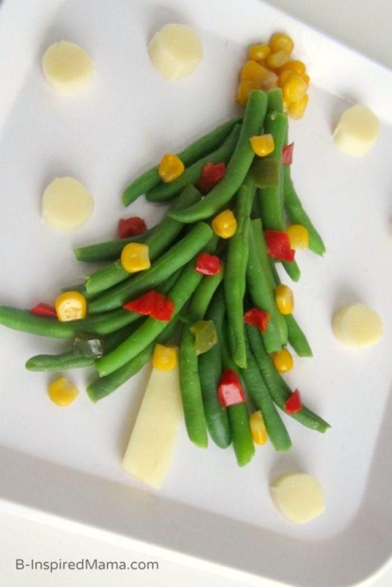 E comida saudável com tema natalino, dá para fazer? Claro que sim! Eu amei essa árvore de Natal feita com vagem, milho, pedacinhos de tomate e palmito! Uma saladinha super gostosa que pode fazer parte da ceia dos pequenos (ou melhor, de todo mundo!). Coloque a criançada para ajudar a decorar o prato, porque fica muito mais gostoso saboreá-lo depois! Ideia da B-Inspired MAMA.