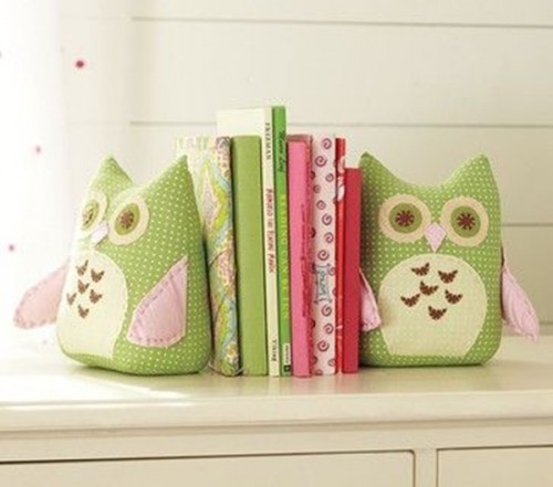 Aparador de livro: esses são de uma imagem do exterior; mas a ideia é bacana, e você pode usar as corujinhas já mostradas para isso!