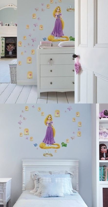 Agora que Catarina chegou aos três anos de idade, estamos pensando em modificar a decoração de seu quarto. As referências ao mundo dos bebês ficaram para trás e o que a atrai no momento são os personagens de desenhos animados, filmes e livros. Ainda não nos definimos por alguma princesa, fadas, ou mesmo pela Peppa Pig, mas já estou buscando ideias para o novo visual do quarto. Uma coisa no entanto é certa: terá que ser de fácil aplicação (para que eu mesma possa fazer – o que significa menor custo – e sem gerar bagunça – pois não há a mínima condição de retirar a pequena do cômodo para uma reforma).