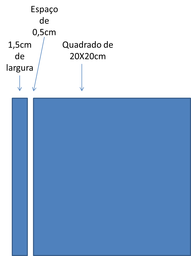 Entre a tira do holler (retângulo de 1,5 x 20cm) e o quadrado de holler, deixar 0,5 cm para que o álbum possa abrir (veja figura abaixo).