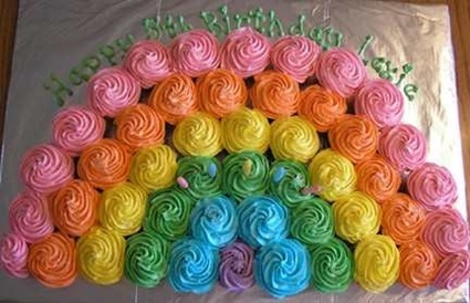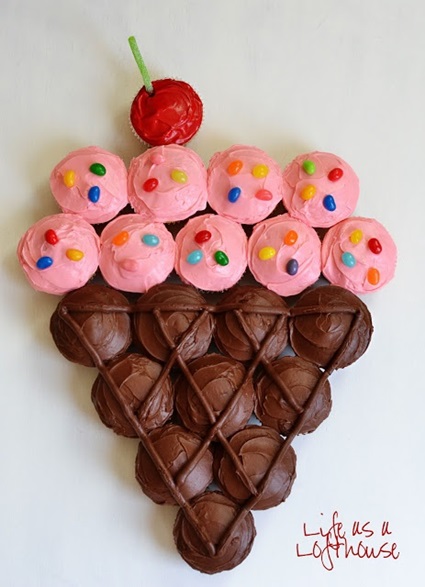 Eu estava outro dia em uma festa infantil, quando vi uma ideia maravilhosa para o momento do parabéns. Ao invés do bolo convencional, foi servido um bolo de cupcakes que fez o maior sucesso entre as crianças. Pensando bem, não é super prático para servir aos pequeninos? Cada um pegou o seu e em menos de dois minutos, estavam todos comendo (e alegremente lambuzados, claro!).