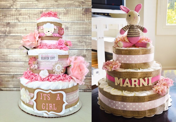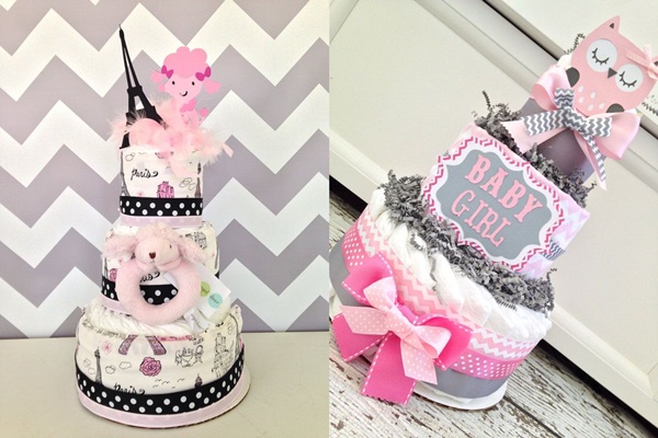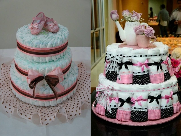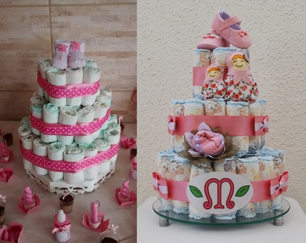 Já faz bastante tempo que eu publiquei sugestões de bolo de fralda aqui no blog, não é mesmo? E desde então, encontrei tantas ideias bacanas na internet, que gostaria de compartilhá-las com vocês. Como recebo muitas solicitações de leitoras que estão planejando seu chá de fraldas e que gostariam de posts específicos com modelos de bolos de fralda de uma determinada cor, farei uma pequena sequência de matérias sobre esse assunto.