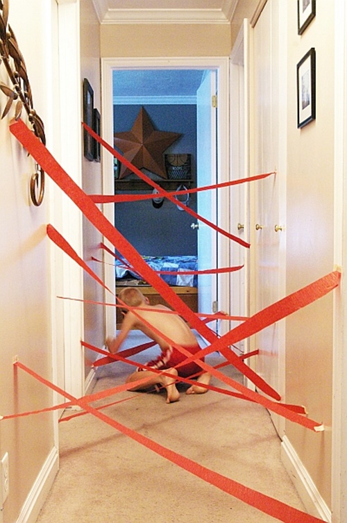 Armadilha: grude fitas nas laterais do corredor e diga para a criançada que são jatos de laser (e que não podem ser encostados de jeito algum!). Ganha quem conseguir passar para o outro lado sem tocar nas fitas.