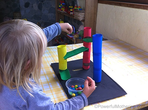 Escorregador: monte um escorregador com rolinhos de papel higiênico. Veja o passo a passo nesse site (está em inglês, mas com as fotos é possível entender o contexto).