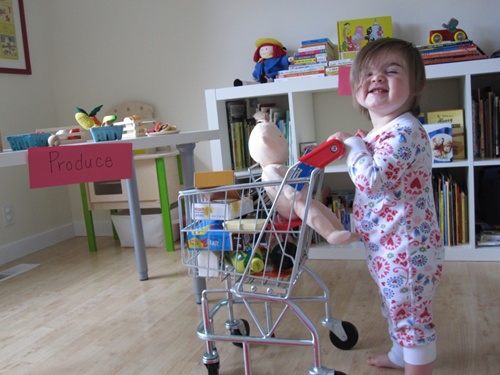 Lojinha: quem nunca brincou de lojinha ou de mercado quando pequeno? Dispor na estante alguns produtos de brinquedo, outros de verdade, fazer o caixa, usar dinheiro de papel e moedas tornam a brincadeira mais divertida.