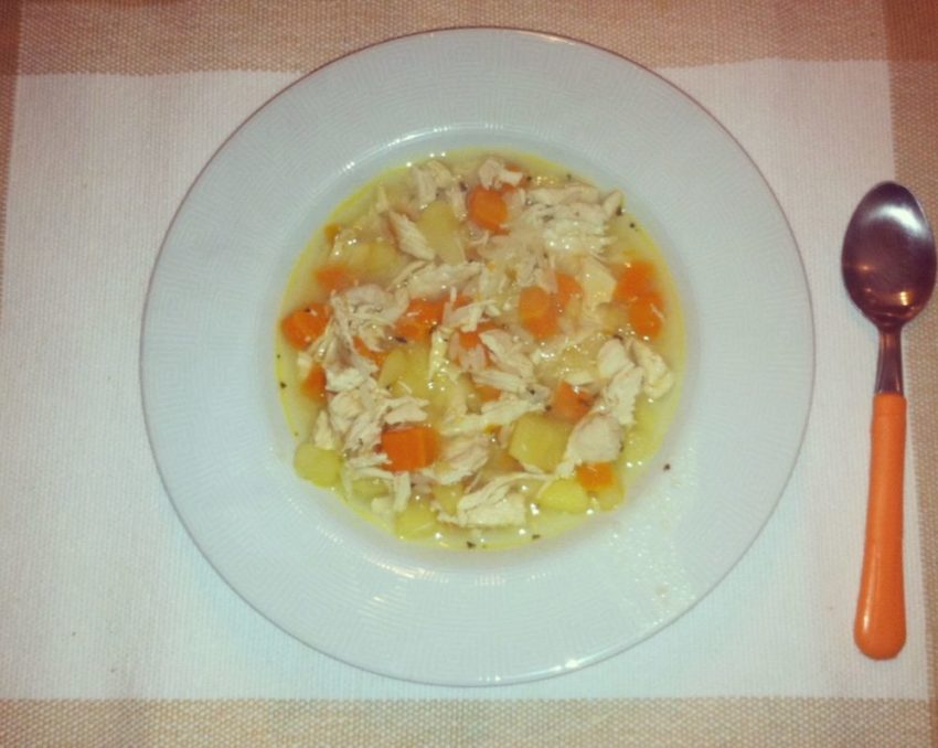 Quer ver a carinha da canja pronta? Esse é o prato que Catarina jantou hoje!