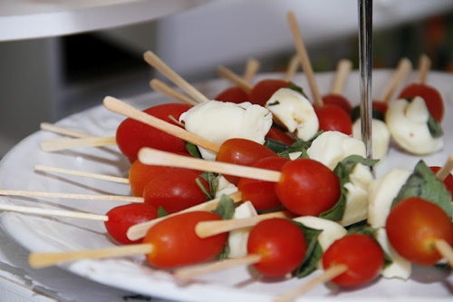 Espetinhos de tomate com queijo e manjericão