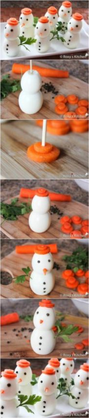 Bonequinho de neve feito com ovo e cenoura!