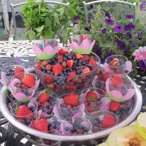Claro que eu não sou xiita e acho que faz parte da festa servir brigadeiro, bolo de chocolate (até porque a ideia é que esse tipo de comida seja oferecido de forma eventual e não no dia-a-dia, não é mesmo?). Mas será que não é possível incorporar ao cardápio um espetinho de frutas ou uma taça de iogurte decorada? O efeito é tão interessante quanto o de um doce decorado (e já que comemos primeiro com os olhos, caprichar no visual aumenta em muito as chances de sucesso entre as crianças!).