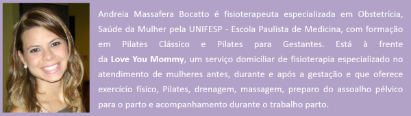Quem passa a conversar regularmente conosco é a Andréia Massafera, uma fisioterapeuta muito bacana (além de linda!), especializada em Obstetrícia pela UNIFESP (Escola Paulista de Medicina).