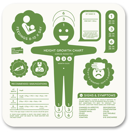 O Information blanket é isso o que seu nome já diz: um cobertor cheio de informações. Achei muito legal esse desenho que guia a forma de enrolar o bebê!