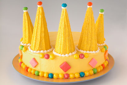 Bolo das princesas: cones de sorvete, balinhas quadradas e confeitos transformam um bolo simples numa coroa de pedras preciosas!
