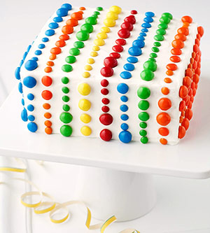 E se tem festa, o que não pode faltar? Sendo bem direta: o aniversariante, os convidados e, é claro, o bolo! Não existe festa sem bolo, sem parabéns, sem a família os os amigos desejando tudo de bom a quem completa mais um ano de idade. Quando você quer fazer algo realmente simples, como convida as pessoas? “Espero você para comer um bolinho lá em casa!”. É ou não é? Assim, o post de hoje mostra que dá para fazer uma decoração de bolo bem interessante e descomplicada! O segredo? Que tal usar docinhos e confeitos (as marcas mais conhecidas são M&M e Confeti) na sua produção? Para “colá-los” ao bolo, você pode fazer um brigadeiro mole, um outro creme de sua preferência, ou mesmo usar algo pronto, como Nutella. Sugiro que você faça testes com os materiais para ver o que funciona melhor com a forma e o desenho de bolo que você escolheu, ok? Veja as imagens que garimpei e se inspire!