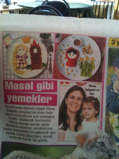No dia seguinte, recebi a mensagem de uma brasileira que ouviu falar sobre os pratinhos em uma rádio local de Milão (gente, o mundo virou um ovo e eu não sabia!). E logo depois, recebi a foto de uma mãe turca, mostrando que as imagens também haviam saído em um jornal de Istambul (é muito engraçado ver sua foto do outro lado do planeta, com palavras cujo significado você não passa nem perto de saber! Santo Google e seu tradutor!).