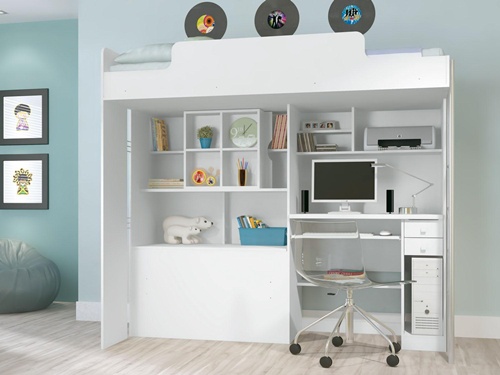 Para os maiores: se o filhote já está crescido, você pode optar por modelos que fogem do ar infantil. O primeiro tem uma cama em cima (perfeito para quartos pequenos); o segundo é o básico, que na dúvida, quebra qualquer galho; e o terceiro tem prateleiras que ocupam toda a parede e que funcionam como objeto de decoração!