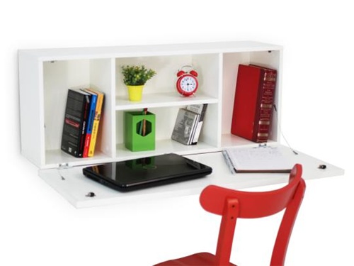 Abre e fecha: eu tive uma parecida como essa quando pequena, e era fenomenal! Quando aberta, é uma escrivaninha com nichos; fechada, é um quadro de fotos ou mural de recados!
