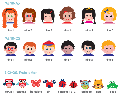 Muitas pessoas me perguntam onde encontrar essas etiquetas, por isso deixo a dica aqui no blog. A Balaio Atelier é uma loja virtual muito bacana, que permite que você personalize etiquetas termoadesivas, de vinil (que são laváveis e excelentes para identificar mamadeiras, pratinhos, potes e todos os itens que o bebê leva para a escolinha) ou comuns (para estojos, canetas e material escolar em geral). Sua criadora, a Adriana Wolff, que é leitora e uma querida parceira do blog, deixa tudo do jeitinho que você quiser: cor da pele, dos olhos, do cabelo e até o penteado que o filhote usa! No final a etiqueta fica com o nome e com o desenho do seu filho, uma graça! Veja alguns exemplos de desenhos que ela já fez: