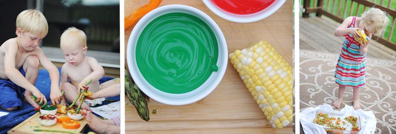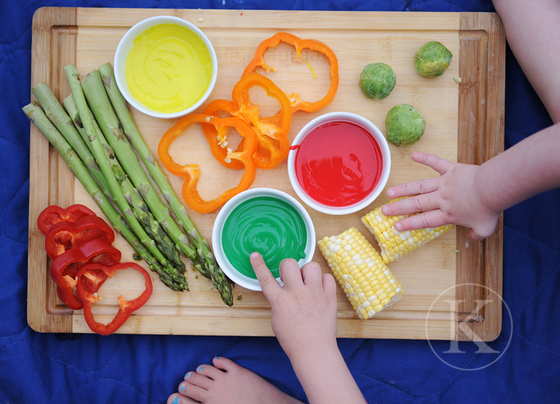 Aspargos podem se transformar em pincéis, espigas de milho em rolos de pintura, pimentões em carimbos e couves-de-Bruxelas em esponjinhas!