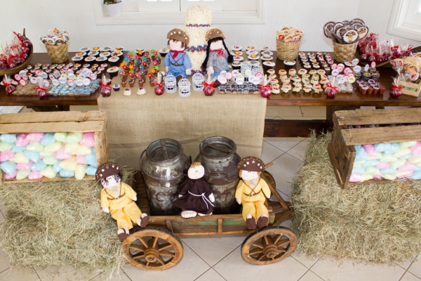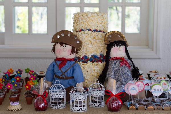Vocês sabem que com frequência eu posto sobre festas aqui no Mil Dicas de Mãe. Em geral são temas bastante conhecidos, como Princesas, Piratas, Circo… E é tão legal quando recebo ideias diferentes, que imediatamente eu penso em compartilhar nesse nosso espaço. Assim aconteceu com a festa da pequena Sofia, que foi inspirada na famosa música de Luiz Gonzaga, “Asa Branca” (lembram como é? “Quando olhei a terra ardendo / Qual fogueira de São João / Eu perguntei a Deus do céu, ai / Por que tamanha judiação…”). Na escola, Sofia teve contato com a canção, se apaixonou por ela e pediu que a transformassem na decoração de seu aniversário. Como não havia nada pronto sobre o tema, que fala sobre o sertão, a seca e um pássaro – a Asa Branca -, a Moulage Eventos personalizou cada detalhe da produção. Vejam como ficaram fofos os bonecos, os doces, o bolo cenográfico de pipoca!