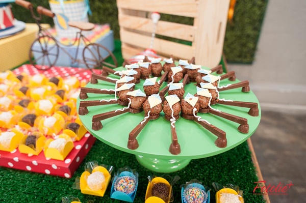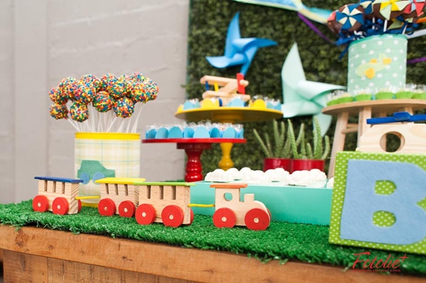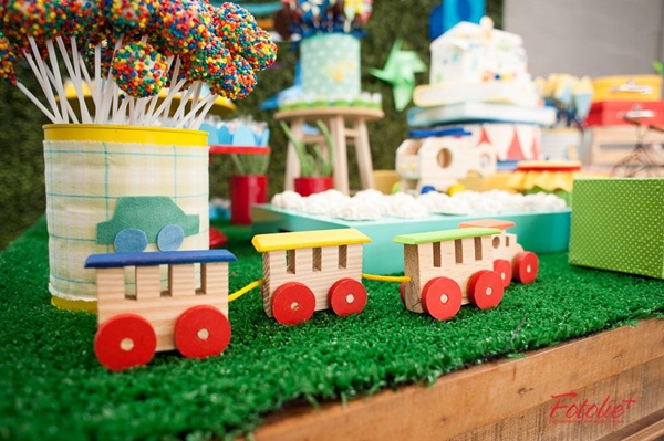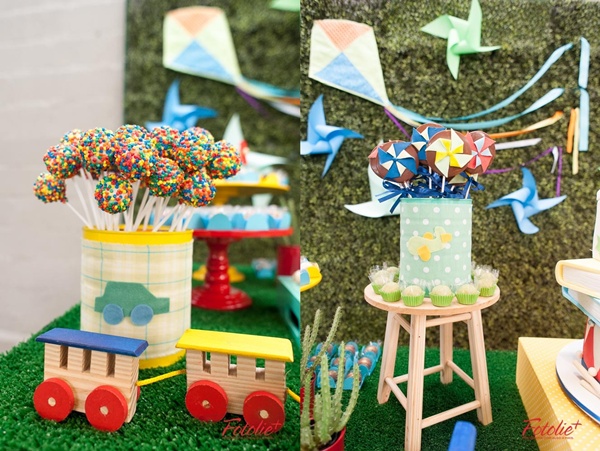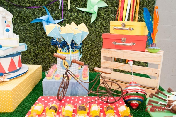 Muitas mães me procuram pedindo sugestões de temas alternativos aos super-heróis para as comemorações de meninos, e usar os próprios elementos das brincadeiras diárias me pareceu genial! Além do resultado ser lúdico, alegre, colorido, fica com aquele jeito das festas de antigamente, que tanto gostamos.