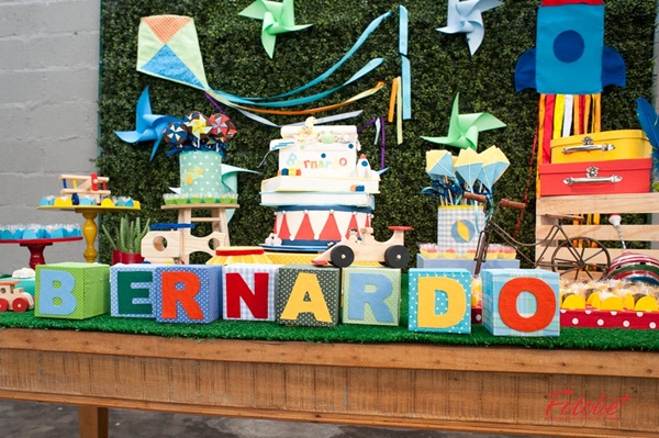 Quer fugir dos temas de aniversário convencionais? Pois então você vai adorar o post de hoje, que traz uma decoração com tema brincadeira de menino! Carrinhos, helicópteros, cataventos e pipas foram usados para compor a festa do pequeno Bernardo, produzida pela Minimimo Festas no buffet No Galpão.