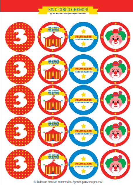 Para usar essa festa circo que estamos disponibilizando, basta baixar os arquivos a seguir e depois imprimi-los normalmente (como são arquivos grandes, o download pode demorar alguns instantes, ok?). Recomendo o uso de papel vergê ou couche de gramatura 180. Aí é só recortar e partir para a decoração!