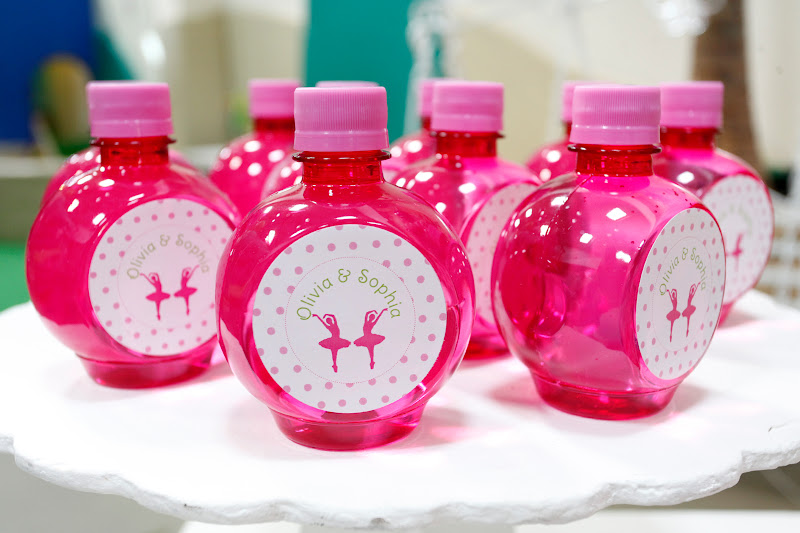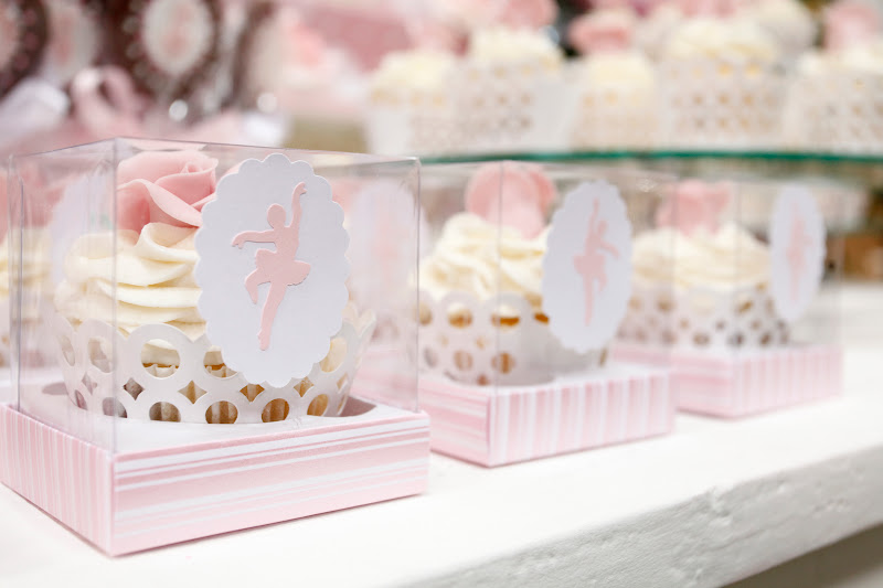 Os doces ganharam tags com uma bailarina, ora em rosa, ora em azul