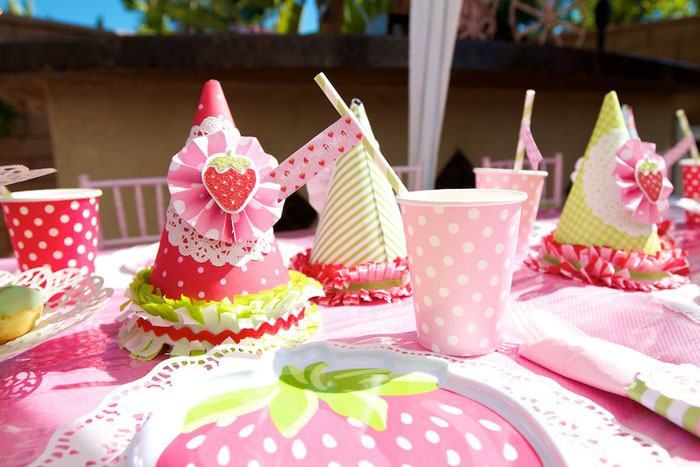 Moranguinhos de papel enfeitam os pratinhos (dá para usar a ideia e embalar lembrancinhas!)