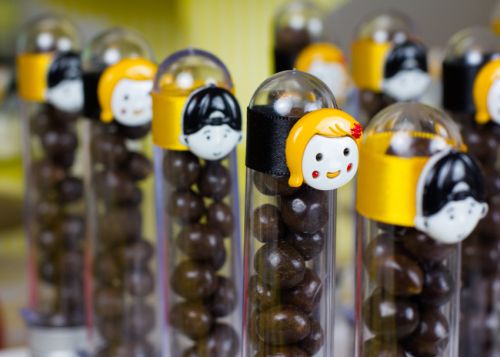 Os tubos decorados ajudam a compor a mesa e podem ser distribuídos aos convidados.