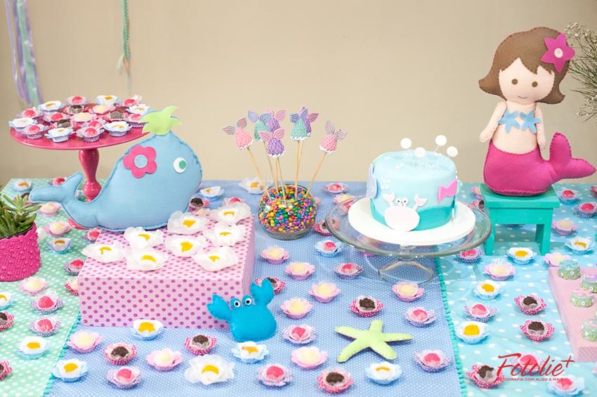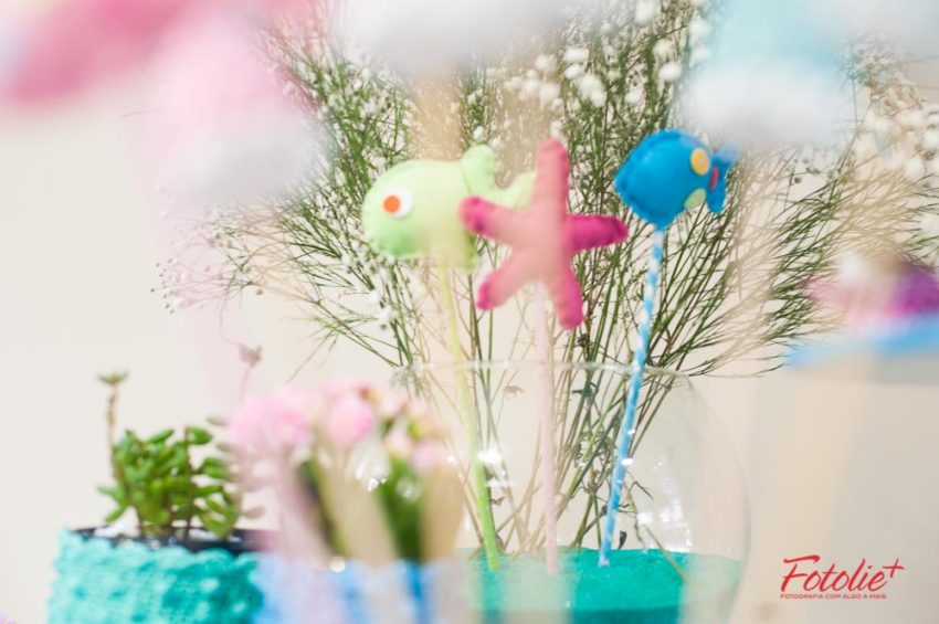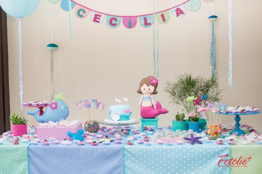 Eu estava sapeando na internet quando encontrei essa linda festa do fundo do mar, feita para a comemoração do aniversário de 2 anos da pequena Cecília. A decoração ficou tão fofa, que dá vontade de levar tudo para casa: a sereia, a baleia, a estrela do mar… Tudo de bom gosto, sem excessos, mas cheio de encantamento. A combinação de cores foi muito feliz: com um tom mais claro (turquesa), outro mais escuro de azul (quase lilás), e o rosa para dar o contraponto. Ao fundo, a bandeirola é a marca registrada da Minimimo Gifts, que produziu os detalhes da festa. Agora vem comigo para ver um pouco mais!!!