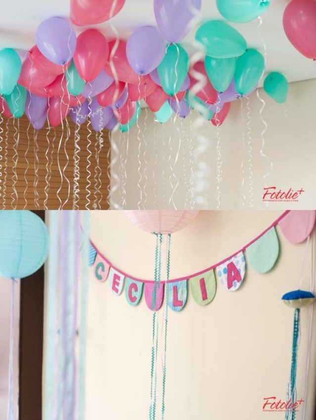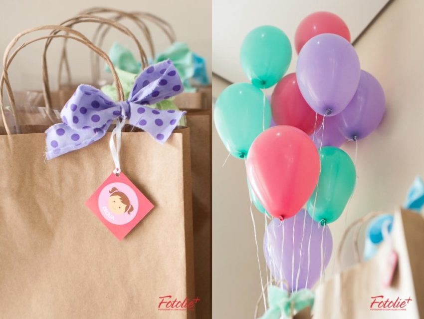 Balões, muitos balões para alegrar a festa! E a bandeirola com o nome da aniversariante.