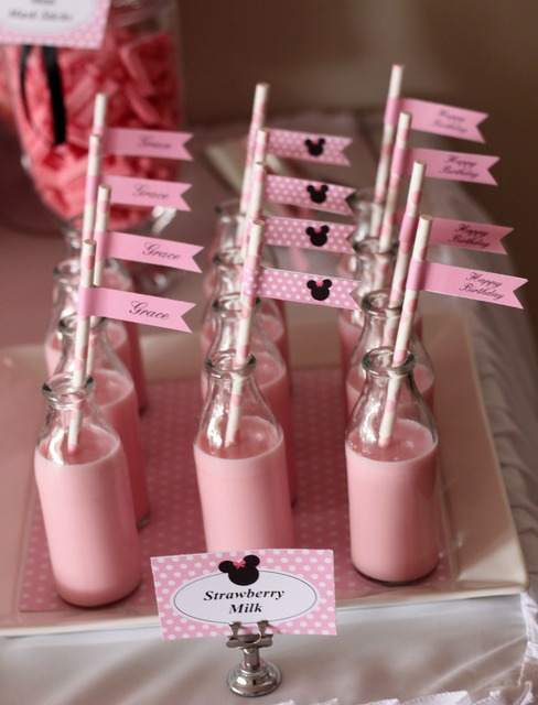Bebidas e comidinhas: aproveitando que é uma festa infantil, servir leite em garrafinhas é super interessante! De salgado, uma boa alternativa são as pipocas.
