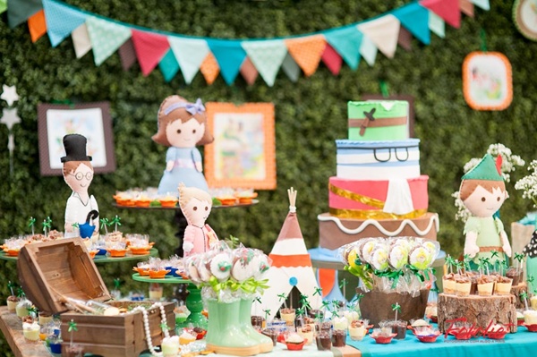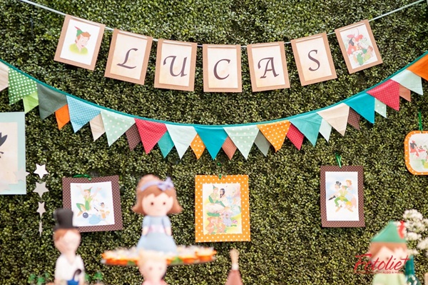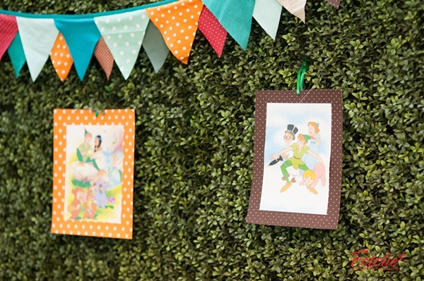 Vocês que acompanham o blog já conhecem as decorações da Minimimo Festas, porque frequentemente elas aparecem por aqui. Eu amo a proposta das meninas, a Camila e a Milena, porque toda comemoração que elas produzem tem aquele jeitinho caseiro, especial, que lembra as festas que nossas mães faziam quando éramos crianças (por isso mesmo é que elas decoraram o segundo e o terceiro aniversário de Catarina). Os bonequinhos em feltro, as toalhas decoradas, a bandeirola com o nome do aniversariante… Tudo muito colorido, cheio de vida! Por isso eu fiquei encantada quando recebi essa festa Peter Pan que elas me enviaram; aliás, um dos temas que eu procurava há tempos para publicar (muitas mães me pediam, mas eu não havia achado uma decoração meiga como essa!).
