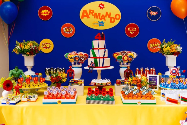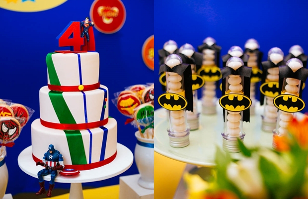 Depois dos 3 ou 4 anos de idade, os temas de festa que mais agradam os meninos são aqueles com super-heróis, já perceberam? Homem Aranha, Batman, Super-Homem e o hit da atualidade – o Homem de Ferro – são praticamente uma unanimidade entre os pequenos. Por isso a festa decorada pela Malu Mattos está cheia de ideias que você pode aproveitar na próxima comemoração do filhote (e, claro, se quiser o toque especial de uma profissional, é só entrar em contato direto com ela).