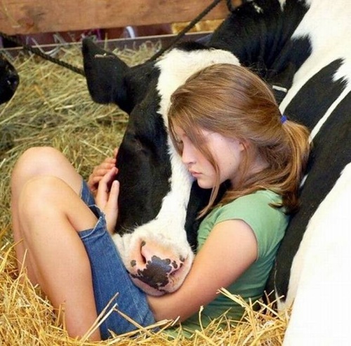 Com uma vaca!