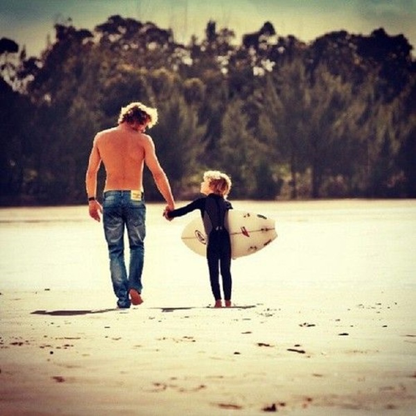 Papai e seu garotão: pegando uma onda, aprendendo a tocar violão, consertando o carro… Aqueles momentos de cumplicidade em que pai e filho se entendem! E a foto clássica, fazendo a barba com o filho, pode ser tirada todos os anos, até que seja de verdade!