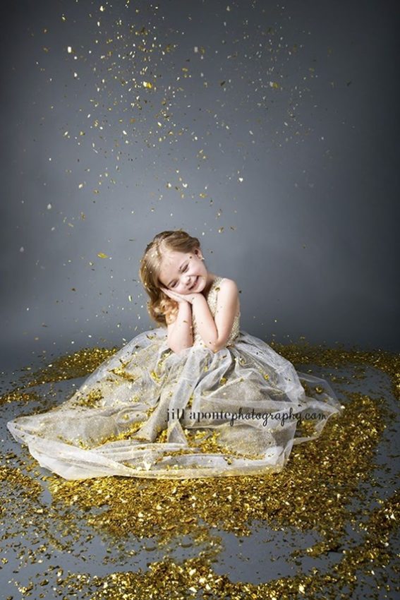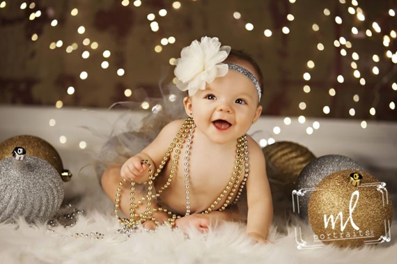 Com muito brilho: vale tirar uma foto do filhote com as bolinhas da árvore de Natal, com as luzes, até com glitter! O resultado fica incrível!