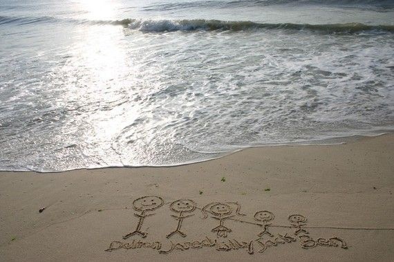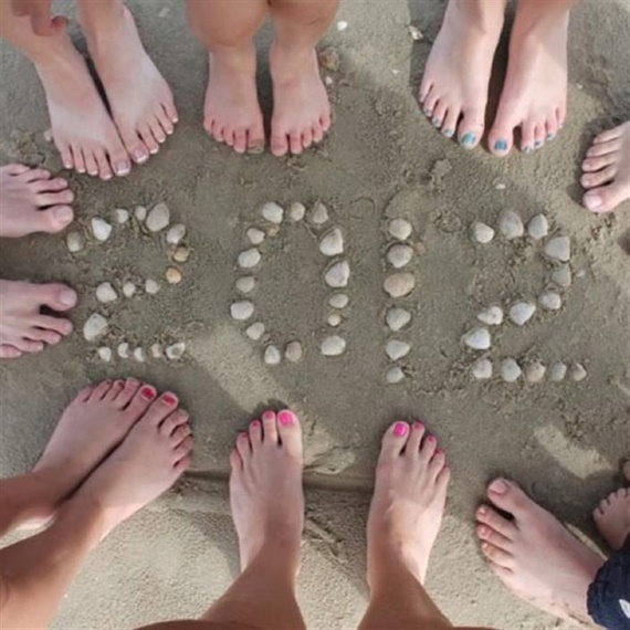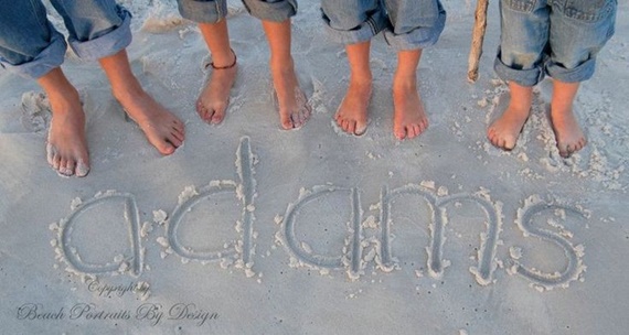 Na praia: você pode fotografar os pés de toda a família reunida, as pegadas, os chinelos… Pode anotar o sobrenome na areia ou desenhar cada integrante: pai, mãe, filhos e até o cachorro! Se puder fazer um registro todos os anos, melhor ainda – você notará a diferença com o transcorrer do tempo!