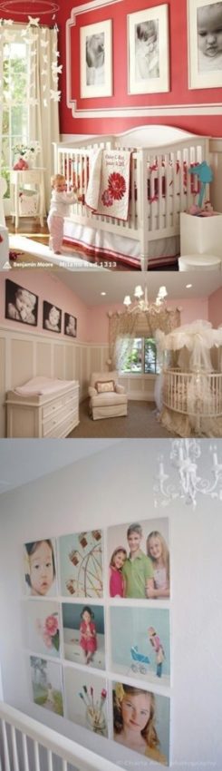 3 – Mural da arte: vale emoldurar o desenho das crianças ou mixar desenhos, estampas, fotos e quadros. Se for no canto do cômodo, dá até um efeito diferente!