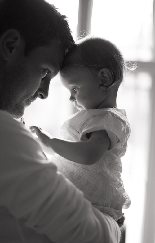 Com papai: você acha que o pai não vai querer a foto dele também? Se duvidar, vai chorar mais do que você ao vê-las, quando o filhote crescer!