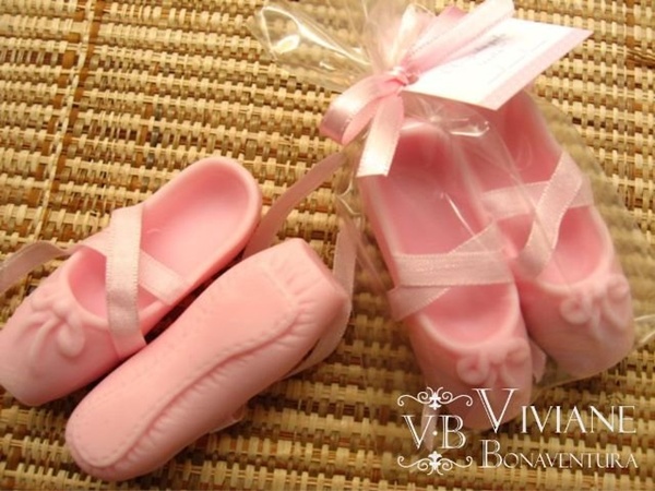 Sabonetinhos: gostei desses, em formato de sapatilha de ballet.