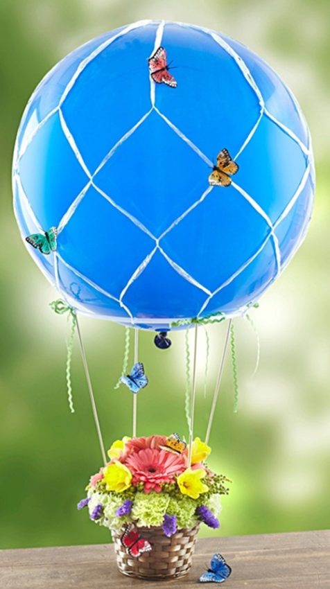 Um balão no meio das nuvens! E outro cheio de borboletas!